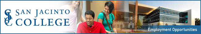 Equal Opportunity Statement: The San Jacinto College District is committed to equal opportunity for all students, employees, and applicants without regard to race, creed, color, national origin, citizenship status, age, disability, pregnancy, religion, gender, sexual orientation, gender expression or identity, genetic information, marital status, or veteran status in accordance with applicable federal and state laws. The following College official has been designated to handle inquiries regarding the College's non-discrimination policies: Sandra Ramirez, VCHR Org/Talent Effectiveness, 4620 Fairmont Pkwy., Pasadena, TX 77504; 281-991-2659; Sandra.Ramirez@sjcd.edu